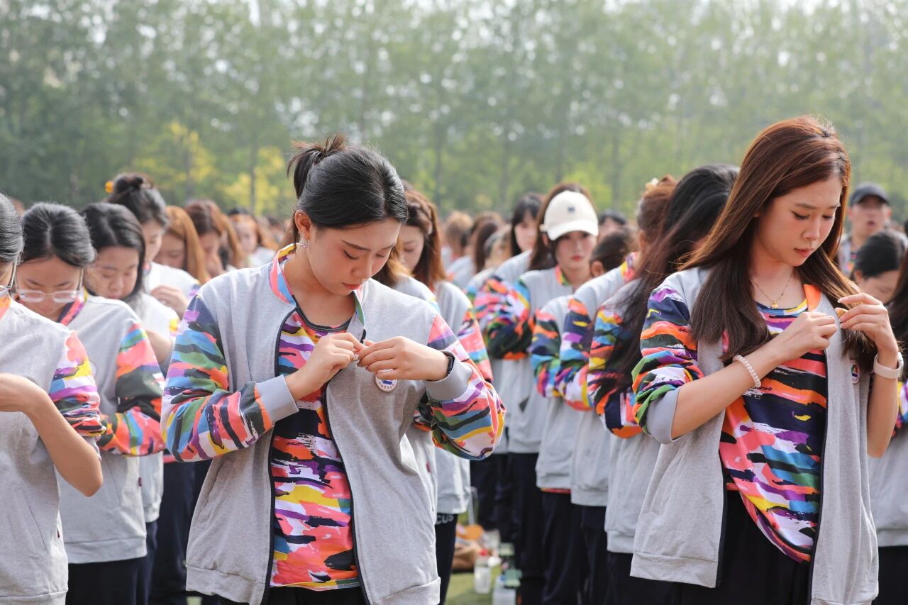 典礼在庄严的国歌声中拉开帷幕,全体师生肃立注目,五星红旗冉冉升起,爱国情怀与青春壮志在每个人心中激荡。