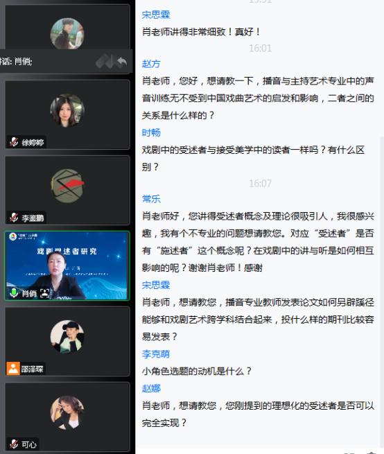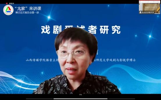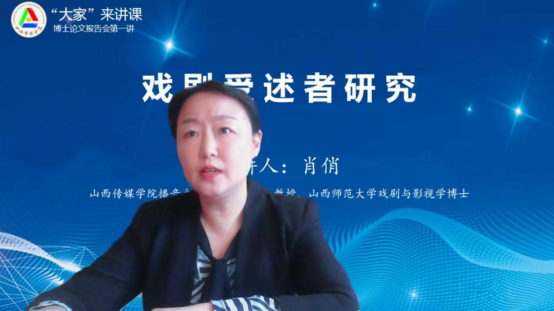9月22日下午,由我校科研部主办、播音主持学院协办的山传“‘大家’来讲课”系列学术活动之“博士论文报告会”第一讲开讲了。播音主持学院副院长、肖俏教授作了题为《戏剧受述者研究》的报告。报告会由科研部部长王秀萍主持,160余名师生相聚云端,共同收听收看了报告会。